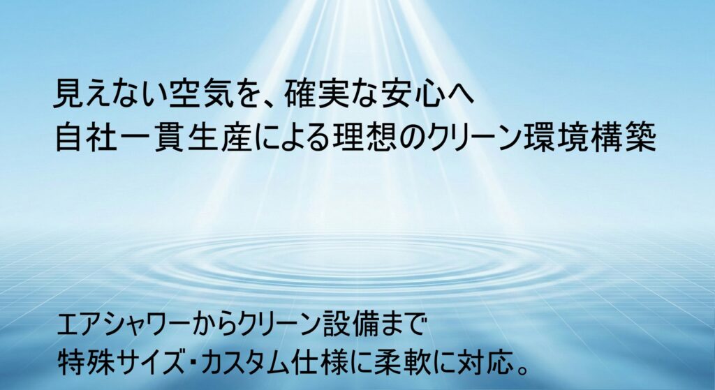 「既製品では現場に合わない」「導入後の運用が不安」そのようなお悩みに、愛豊工業は確かな技術力と柔軟な対応力でお応えします。単なる設備メーカーではなく、お客様のクリーン環境を”設計から運用まで”