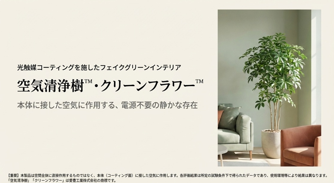 ・「空気清浄樹」「クリーンフラワー」は愛豊工業株式会社の登録商標です。